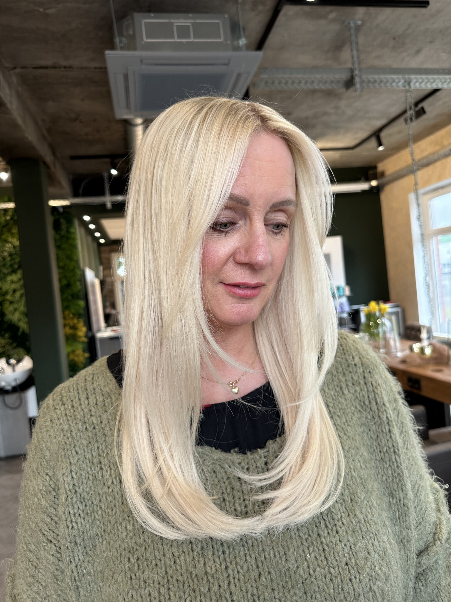 Verwirkliche Deinen Traum von perfekt integrierten, natürlich vollen Haaren mit einer Haarverlängerung, die bis in die vorderste Kontur reicht und völlig unsichtbar bleibt.